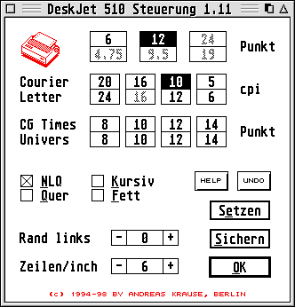 Rand ist druckerunabhängig über ein Editfeld oder ein Popup-Menü einstellbar.